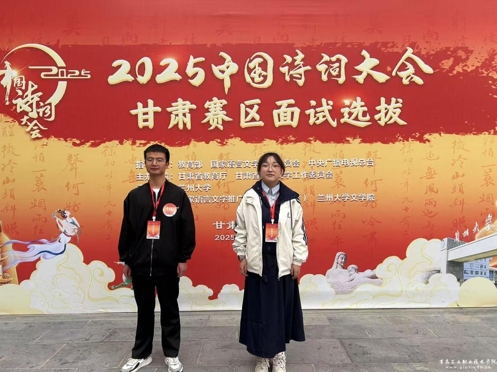 4月12日,2025中国诗词大会甘肃赛区面试选拔在兰州大学举行。我校张洁、杜吉平两位同学代表学校参加。此前,在公共课教学部组织的校内选拔赛中,两位同学凭借深厚的诗词功底和出色的临场表现,从众多参赛选手中脱颖而出,获得省级面试选拔资格。