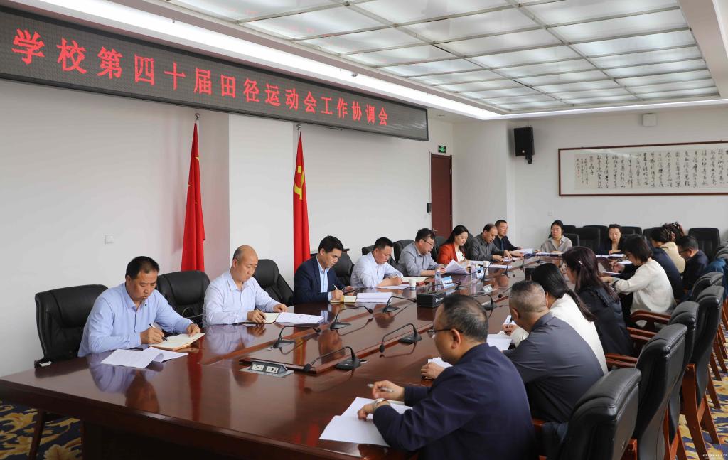 4月18日下午,学校在图书馆四楼会议室召开第四十届田径运动会工作协调会。院长张利军出席会议并讲话,学校各相关部门和二级学院负责人参会。会议由党委副书记文云主持。