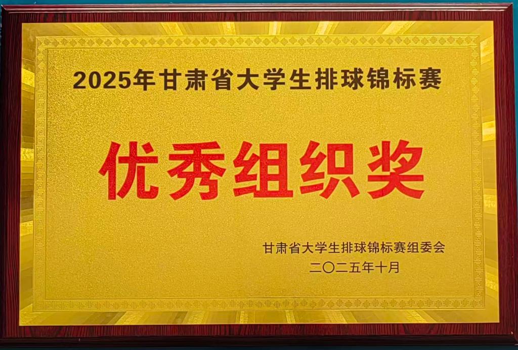 近日,由甘肃省教育厅主办的2025年甘肃省大学生锦标赛在兰州新区举行。本届赛事设有篮球、排球、足球三个项目,吸引了全省众多高校代表队参加。我校精心组织、积极备战,选派篮球队、排球队与足球队出征参赛,经过激烈角逐,我校男子排球队凭借顽强拼搏的精神与出色的团队配合,荣获丙组第八名的优异成绩;校篮球队亦表现优异,获评“体育道德风尚奖”;我校也在此次赛事中荣获“优秀组织奖”。