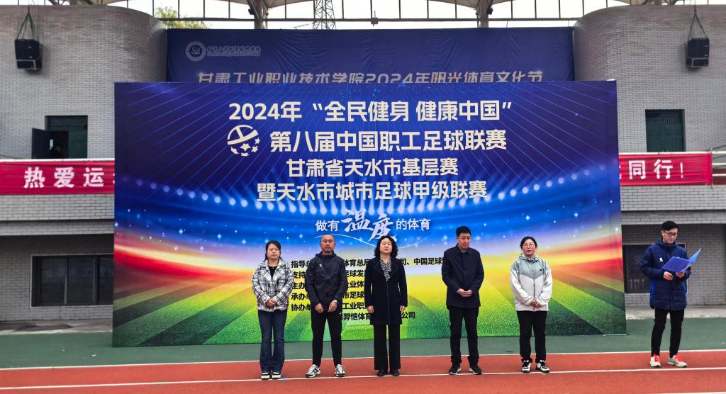 11月16日,由中国企业体育协会主办、天水市足球运动协会承办、甘肃工业职业技术学院协办的2024年“全民健身 健康中国”第八届中国职工足球联赛(天水市基层赛)暨天水市城市足球甲级联赛在我校拉开序幕。此次比赛为期10天,来自全市各县区的6支队伍,共计180余人参加。天水市体育局局长成红梅、市体育总会副秘书长金刚、甘肃工业职业技术学院公共课教学部副主任李雯、体育教研室主任铁晓琳等人出席了开幕式,并为首场比赛开球。