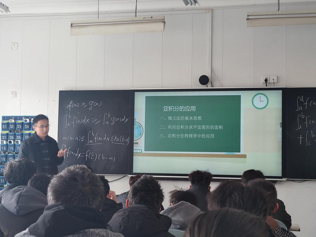 12月19日下午,青年教师赵为东则运用多媒体教学手段,结合生活实例讲解定积分的几何意义,他注重启发学生思维,课堂上与学生互动积极,数智化教学手段的使用,充分展现了青年教师的教学创新活力。