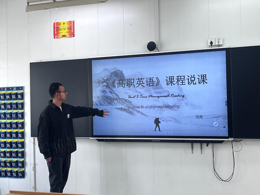 为进一步贯彻教学质量提升行动,提高新入职教师教学能力和信息化教学水平,英语教研室于4月28日在二教203教室开展英语教师说课评课活动,说课人为新入职英语教师同亮。